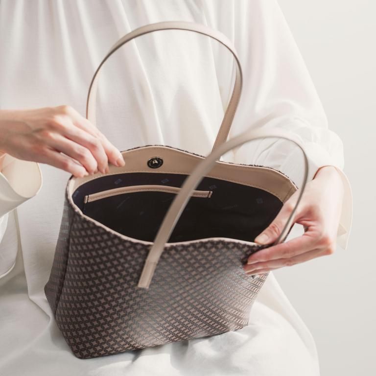 中身の整理に便利な2種類のポケットと広めのマチがあるため、お出掛けの必需品をしっかりと収納できます。