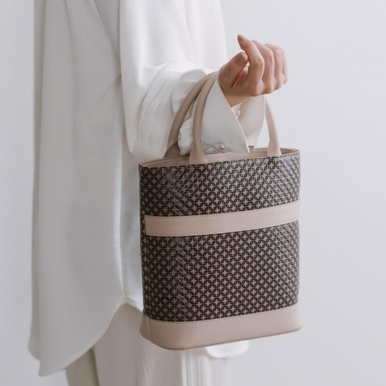 やさしい曲線で構成されたデザインフォルムは、漆の艶めきが見える角度によって変化し、バッグに豊かな表情を演出します。