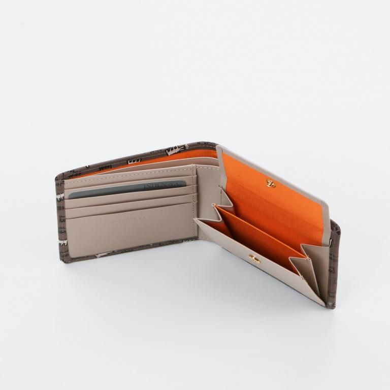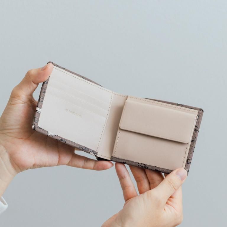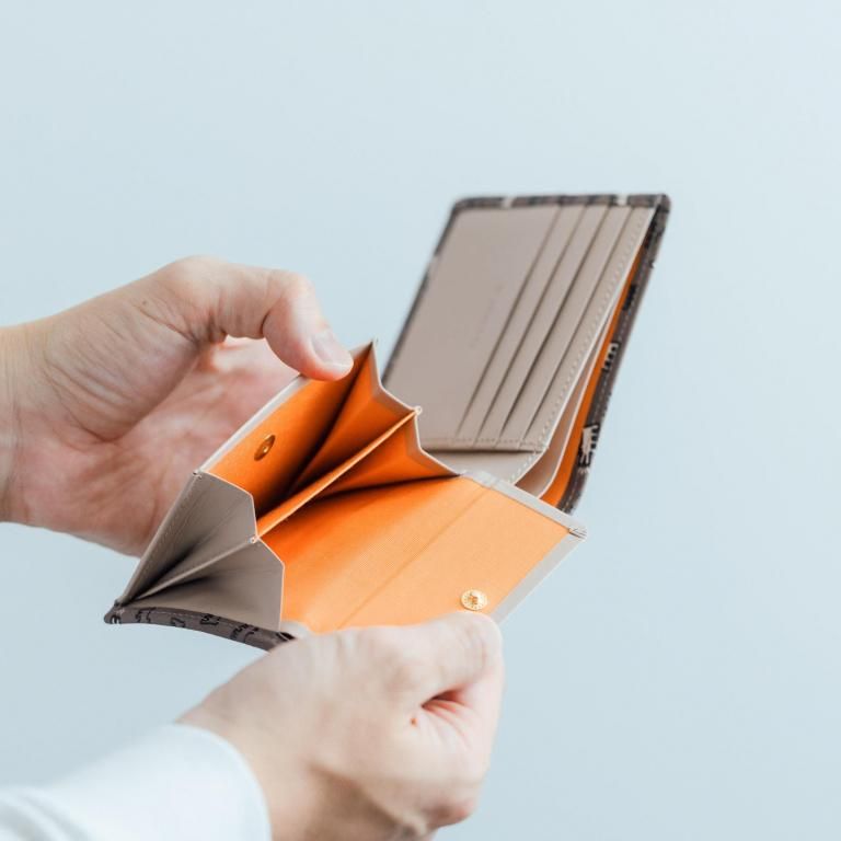 ジャケットやスーツなどのポケットに収められる二つ折りタイプのお財布。