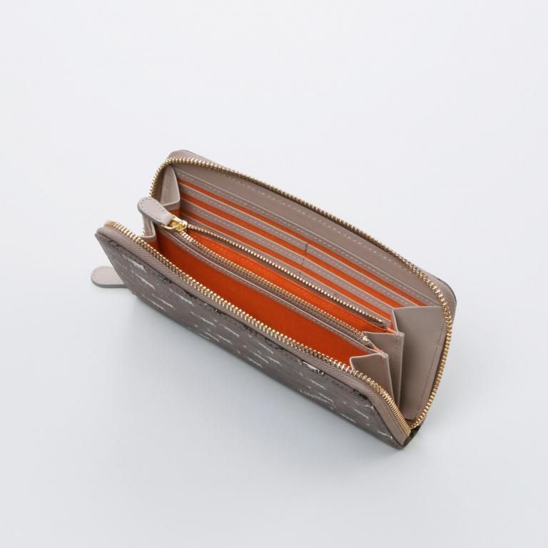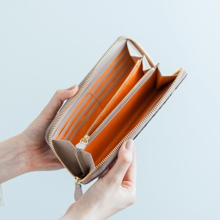 ラウンド型のファスナーでスムーズに開閉できる長財布。