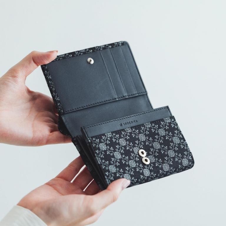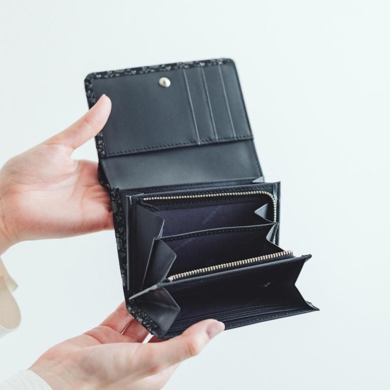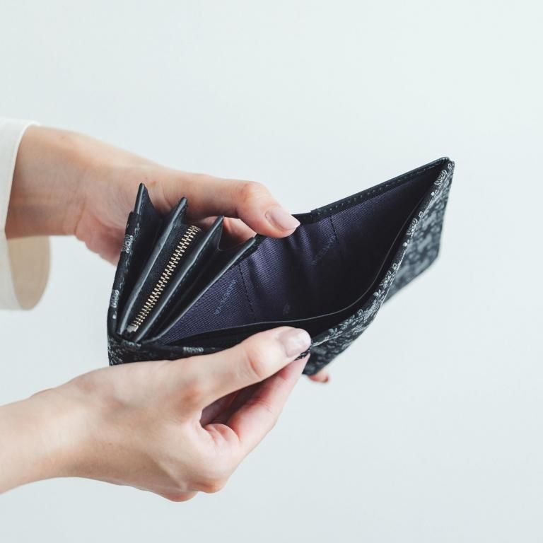 紙幣も小銭もカードもたくさん収納できる機能性と、コンパクト感を兼ね備えた、二つ折り札入。