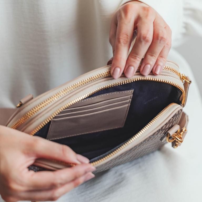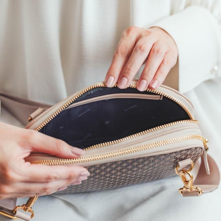 メインの収納は2カ所。ひとつは、ポケット1つのシンプル収納。もうひとつは、整理に便利なファスナーポケットとカードポケット。
