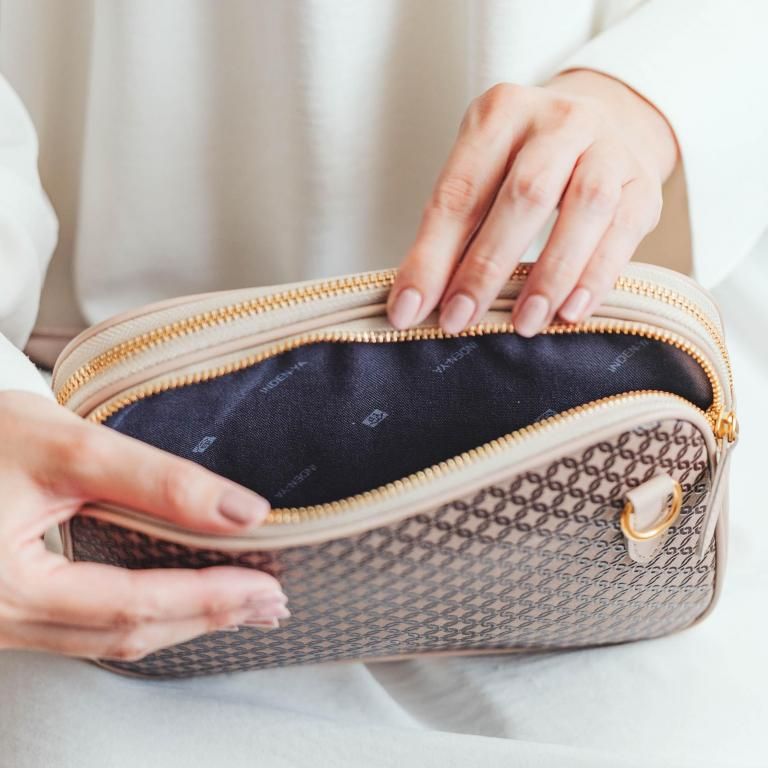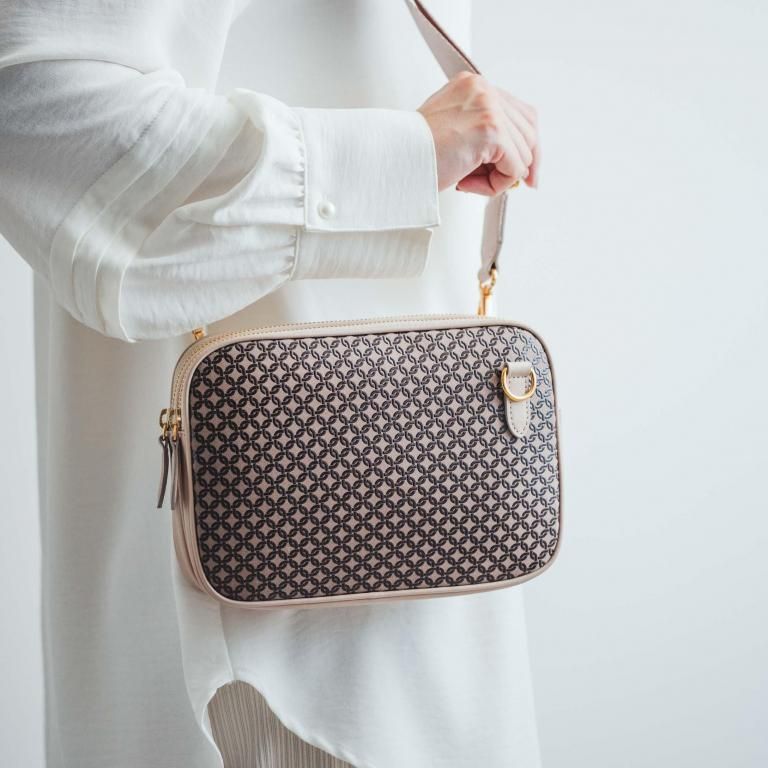 艶のある印伝の上品な印象に、ゴールドファスナーで少しエレガントさを。丸みのある可愛らしいフォルムのミニポシェットです。