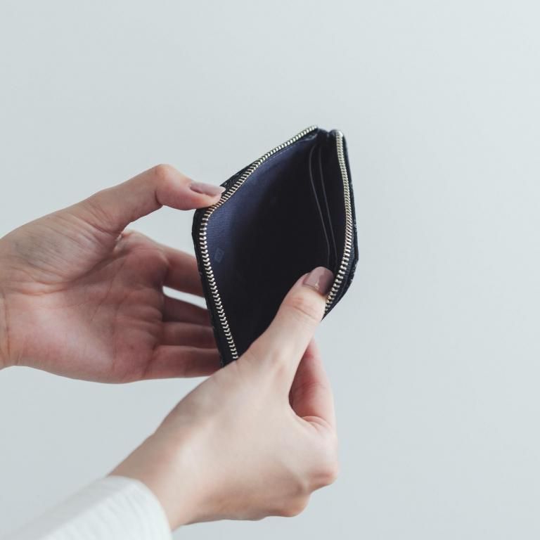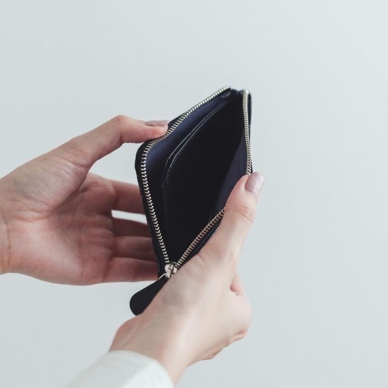 必要最小限の小銭とカード、折りたたんだ紙幣を入れても少しの余裕が生まれるサイズ感が魅力の小銭入です。