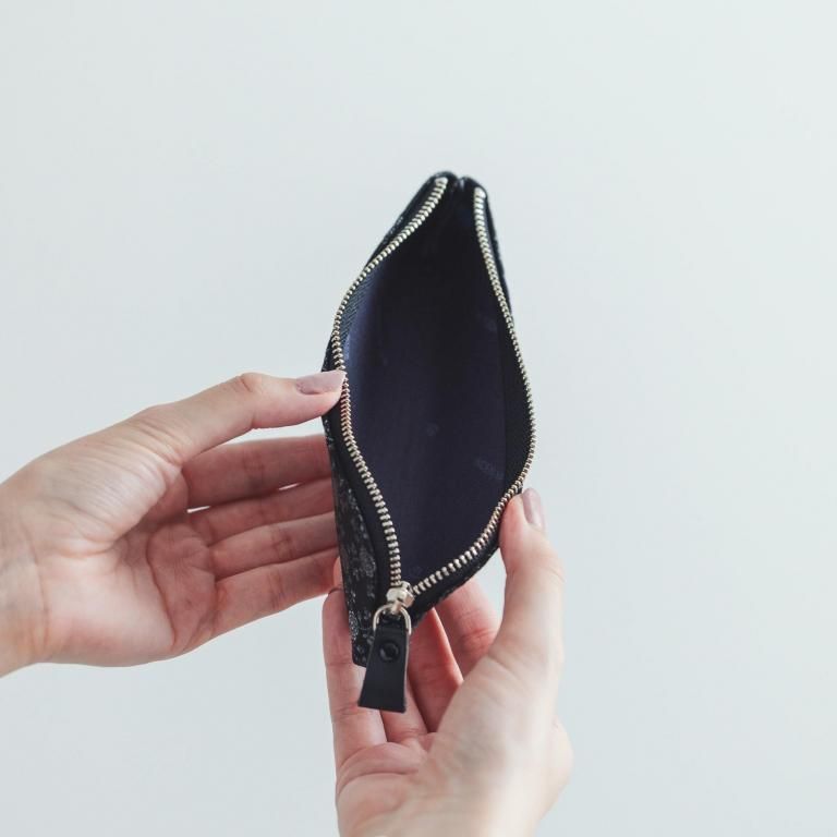 L字ファスナーのため大きく開いて中身が確認しやすいのが特徴です。