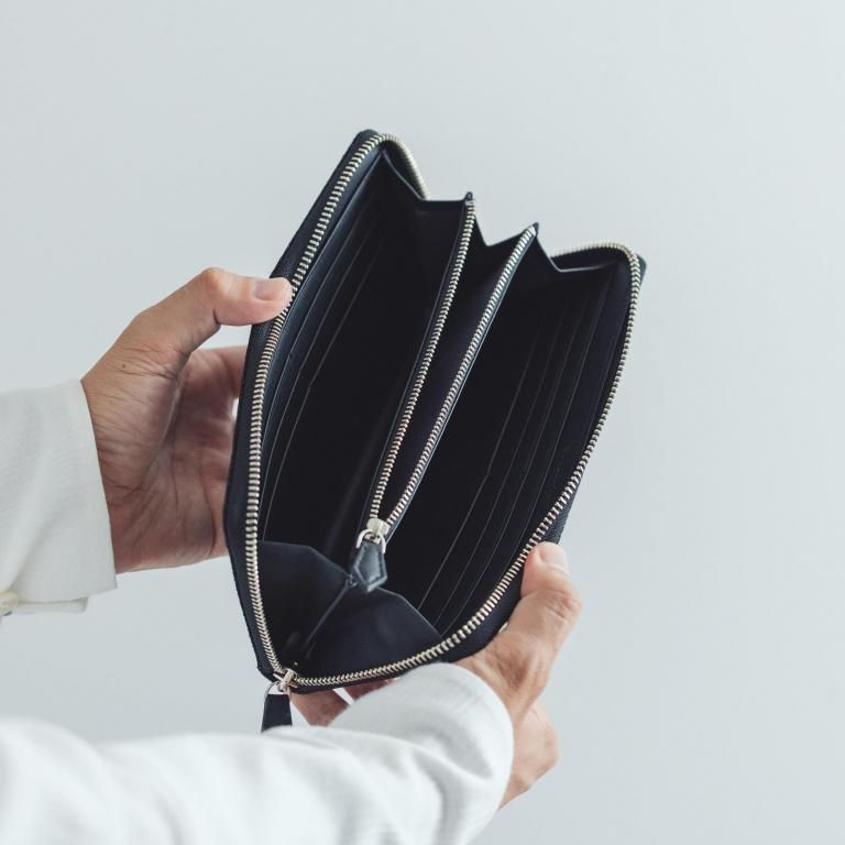- 札入×2/カード入×12/ポケット×2/中仕切りを兼ねたファスナー式小銭入×1
