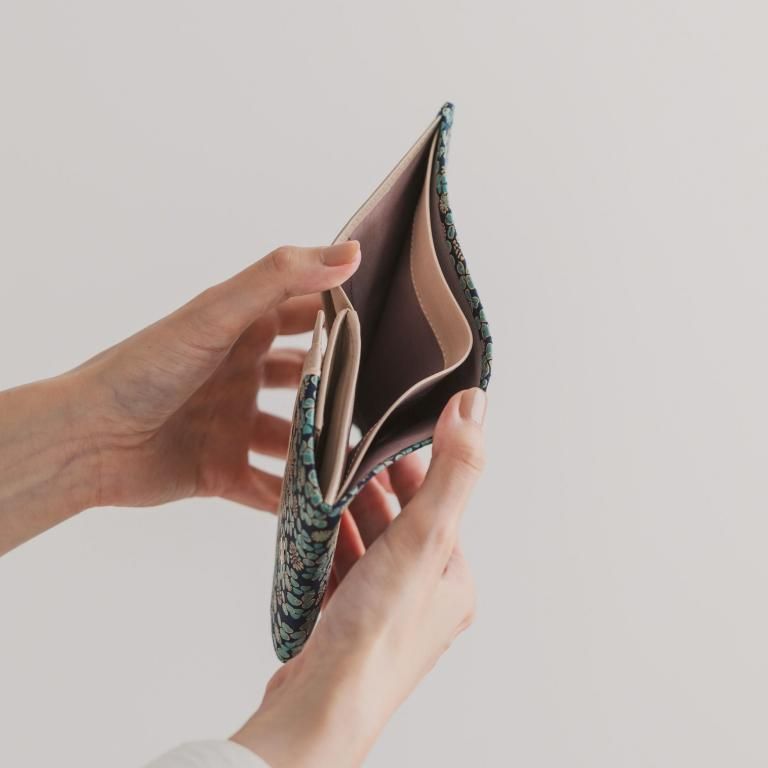 お出かけのバッグや手荷物もミニマルなライフスタイルに寄り添った、二つ折りタイプのお財布。