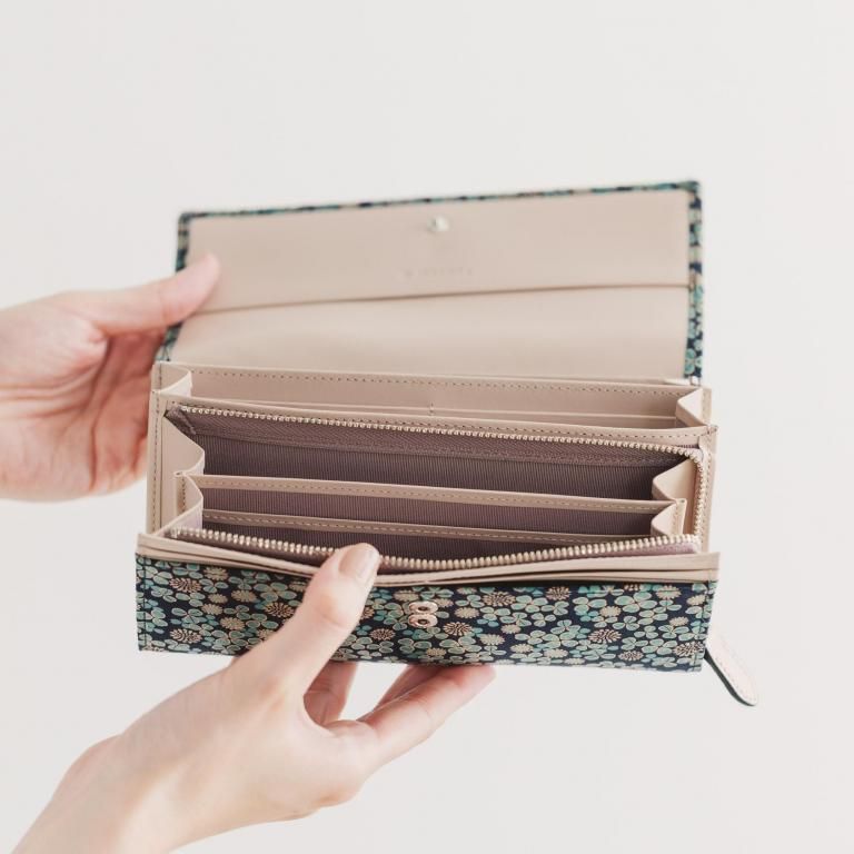 永く愛用するものだからこそ、デザインはもちろん実用性にこだわった“かぶせ”タイプの長財布です。
