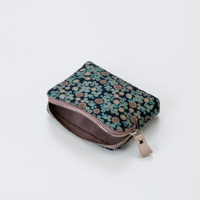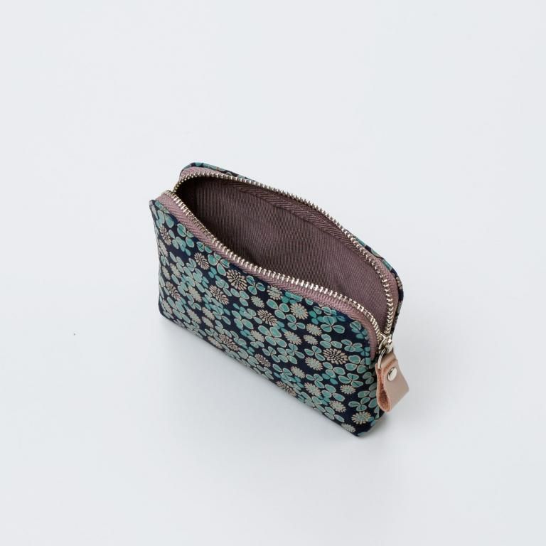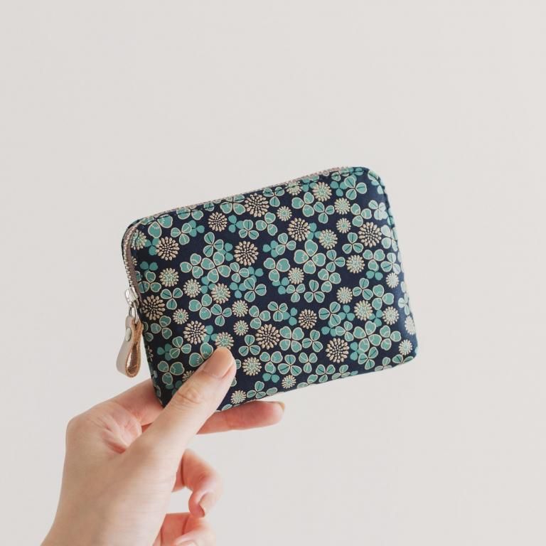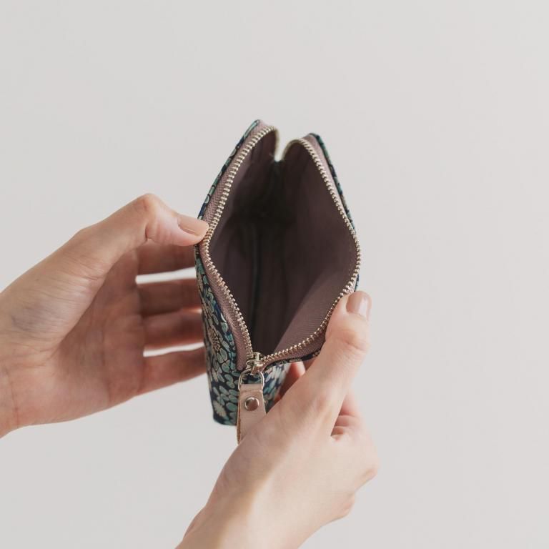 手のひらに収まる、小型ポーチです。中身が取り出しやすい丈夫なラウンドファスナー式。