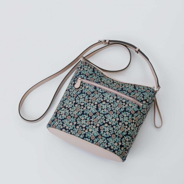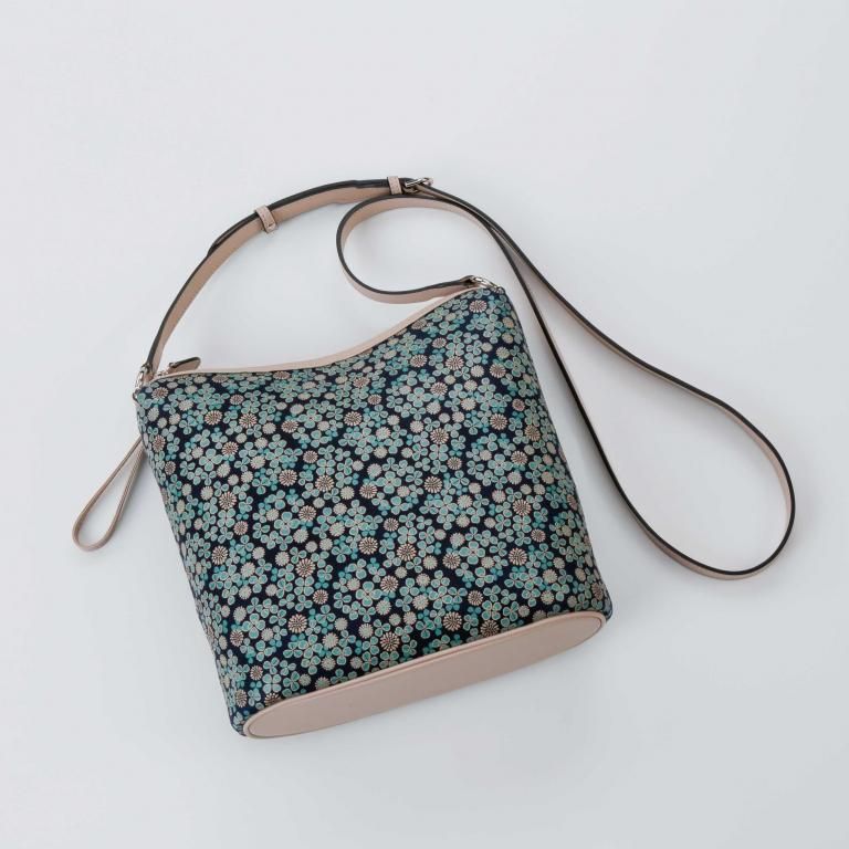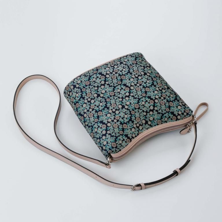 シックで艶やかな印伝革を大きく使い、豊かに丸みのある立体的なデザインを縫製で実現しました。