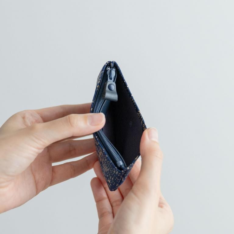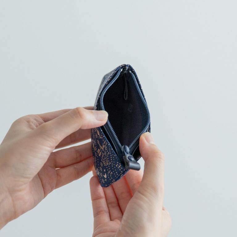 手のひらや小さなポケットにも、収まる薄型で小ぶりな小銭入です。折りたたんだ紙幣などを収納できるポケットが2つ付いています。