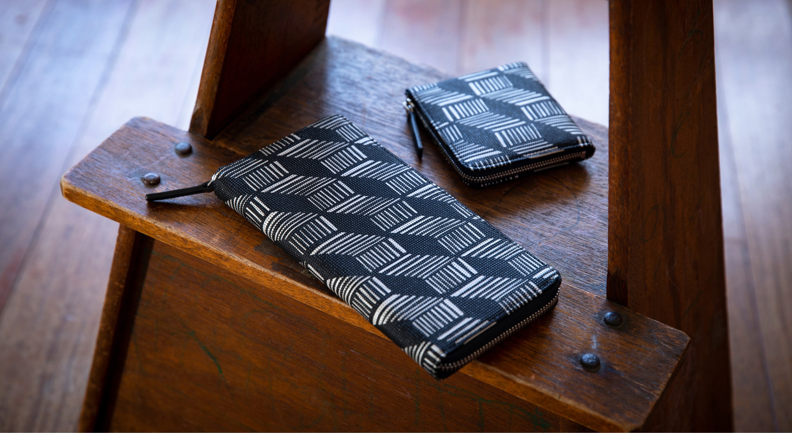 古来、格子は日本のさまざまな空間に使われ、そこに生じる陰影の機微を人々は愉しんできました。格子から差し込む光と影をモチーフに、印傳屋がかつて考案した「影格子」模様がいま、ここに復活。令和の新たな光を受けて登場します。