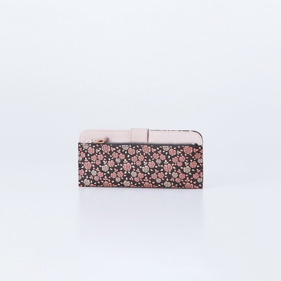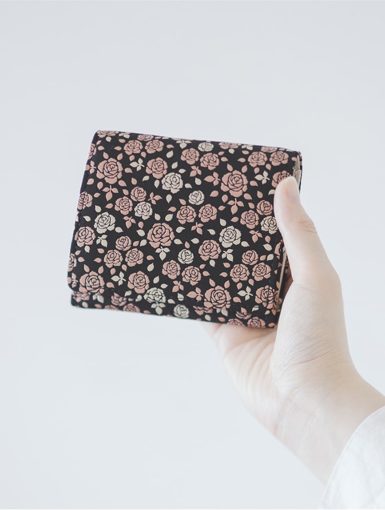 いつも芳しい薔薇の薫りに包まれるような、満ち足りたひとときを感じていただけるように。そんな想いから、ピンクと白の漆で薔薇の花園を表した印伝をつくりあげました。伝統的な草花の模様が多く伝わる印傳屋の中でも、「かぐわ」のように現代の感性でつくりだす新しい印伝の模様もあるのです。
