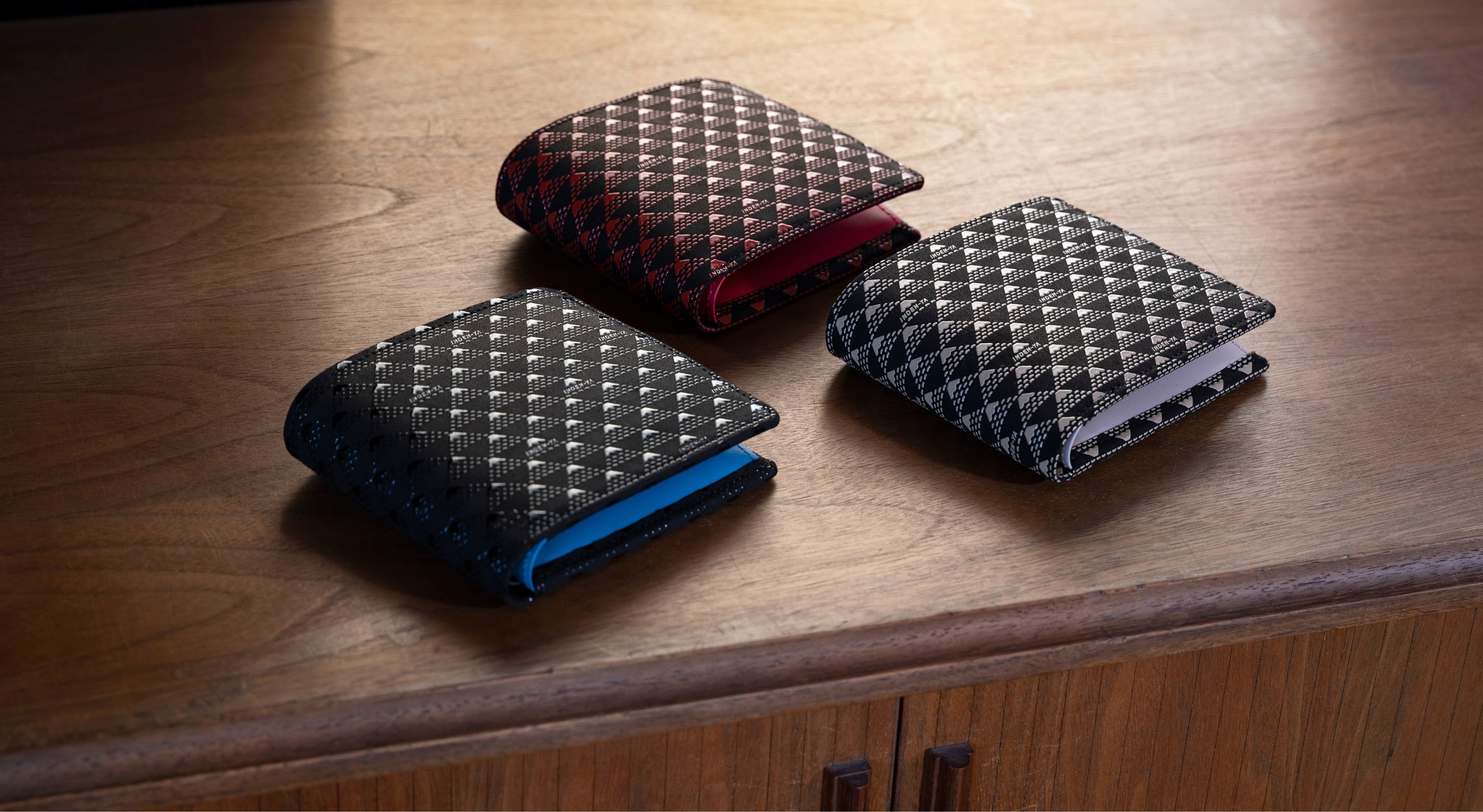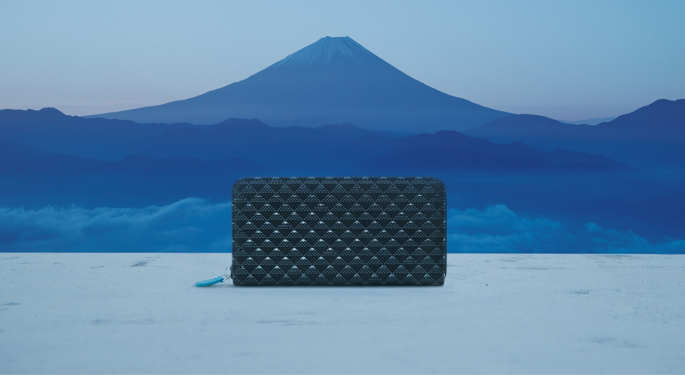 富士は、その偉大な存在も神秘の美しさも尽きることがないさまから「不尽」とも表されます。麓の甲州で仰ぎ見てきた印傳屋も、心にそびえ立つ高嶺を誇りに感じながら、人々がいつまでも志や夢が尽きることなく進み続けられることを願い、印伝の模様にしました。