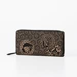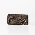 「鶴は千年、亀は万年」といわれる長寿の象徴。 平安時代より鶴と亀の取り合わせは 吉祥文として取り入れられてきました。 印伝の鶴亀にはさらなる吉祥の願いを込めて 菊文を地紋とし、松竹梅を添えました。 日本のめでたさを重ねて、新たな年の歩みへ。