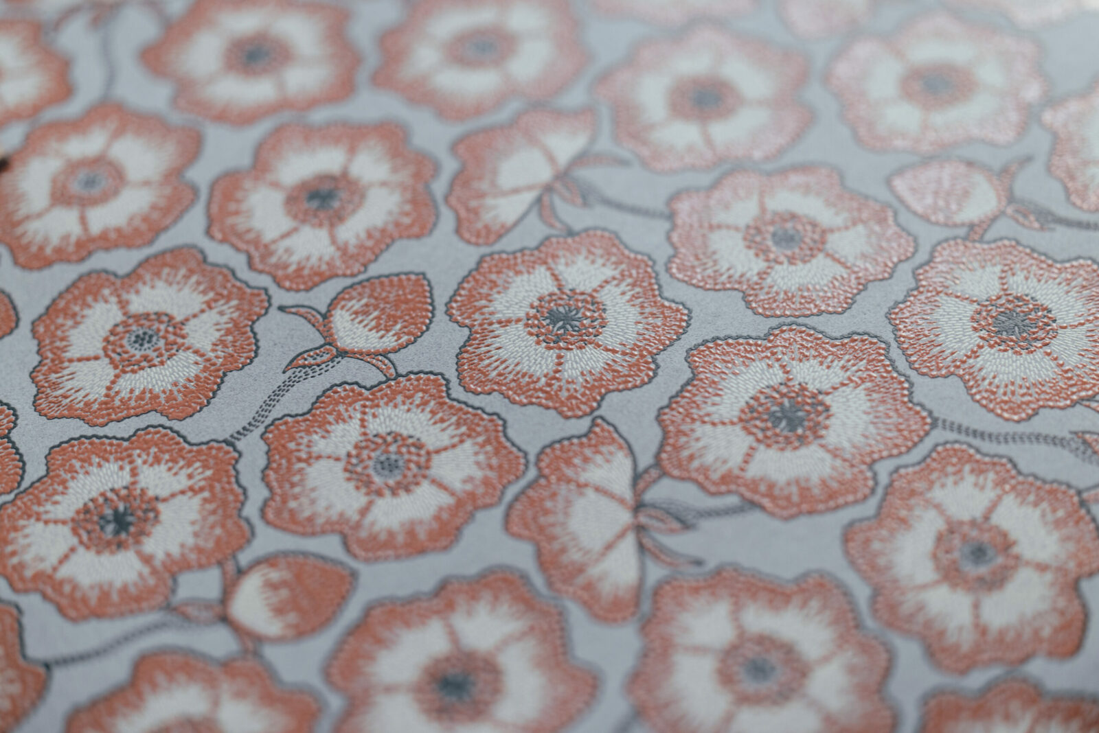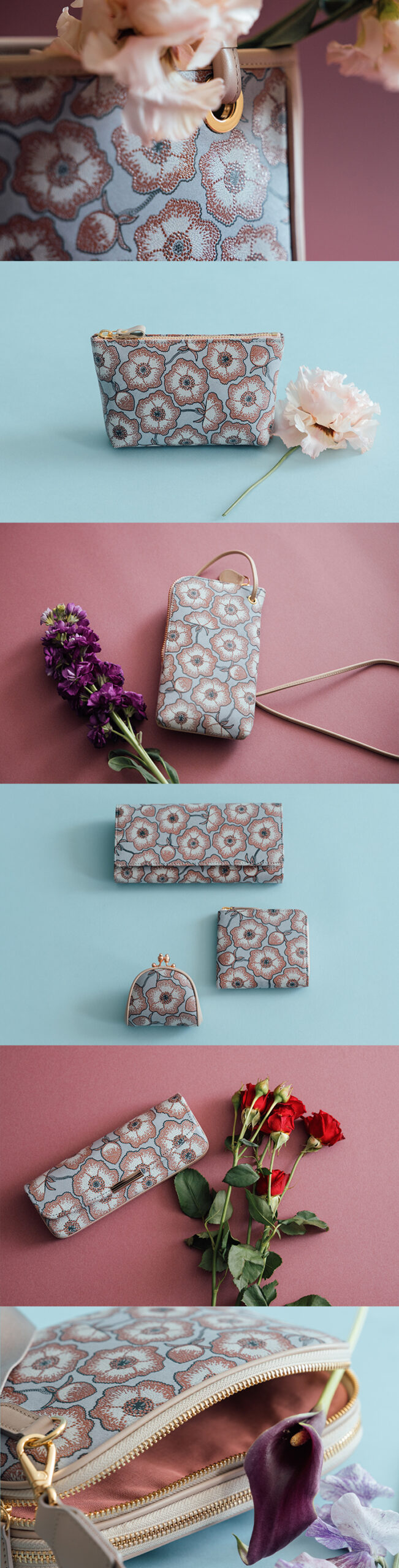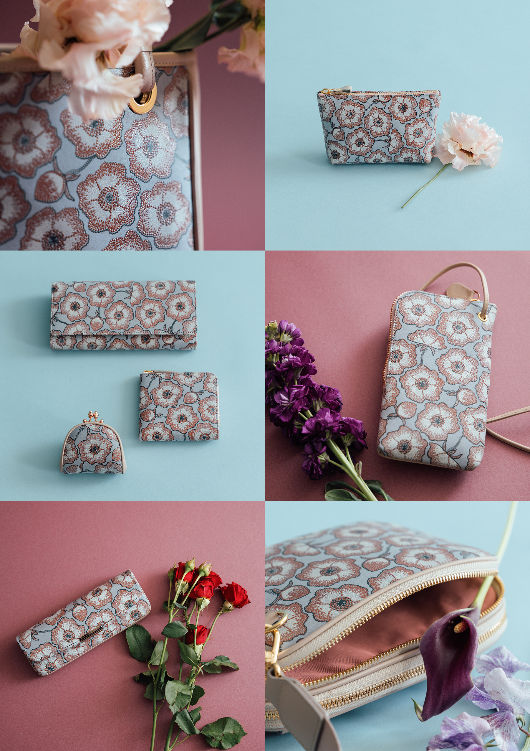 その可憐な姿を印伝の技でゆったり大きく咲かせました。