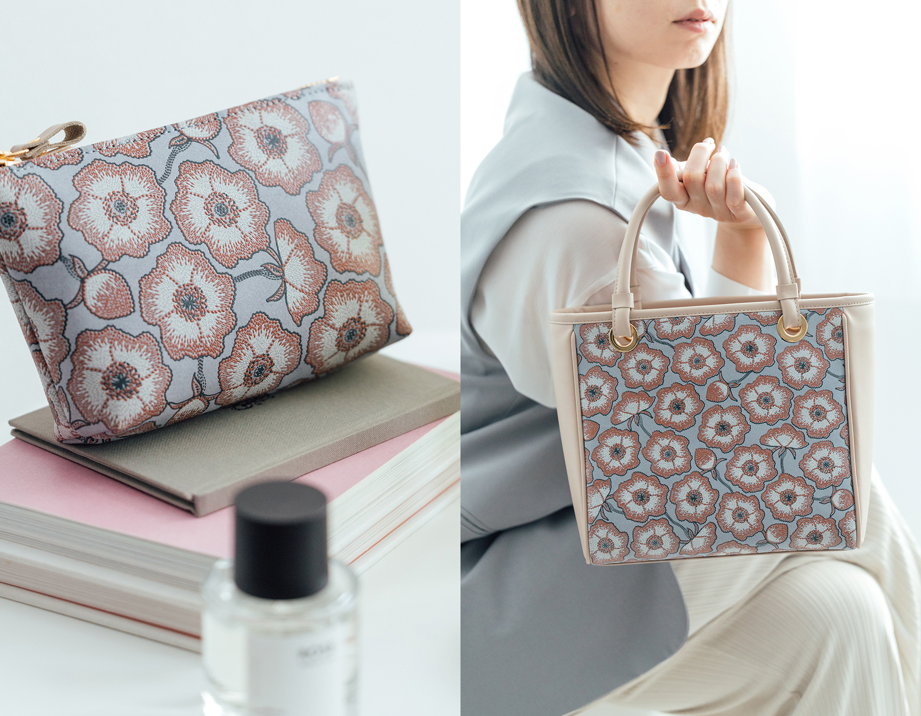 大きな花弁に配した更紗の新色ミルキーホワイトと
