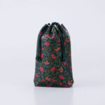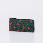 古来、東洋では不老不死の瑞鳥とされる鳳凰が永遠に伸びゆく唐草の中を舞う。この上ない吉祥のしるしの和合を深緑の鹿革に五色の更紗で表現しました。