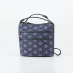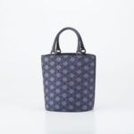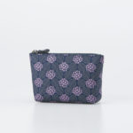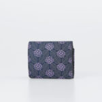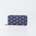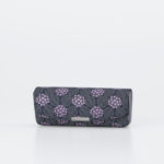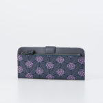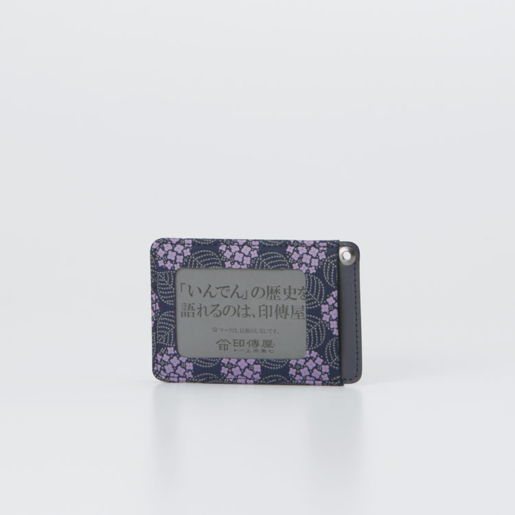 紺地の鹿革にグレーの漆で葉と小花を描き、色を重ねた調和が美しい更紗の技で、