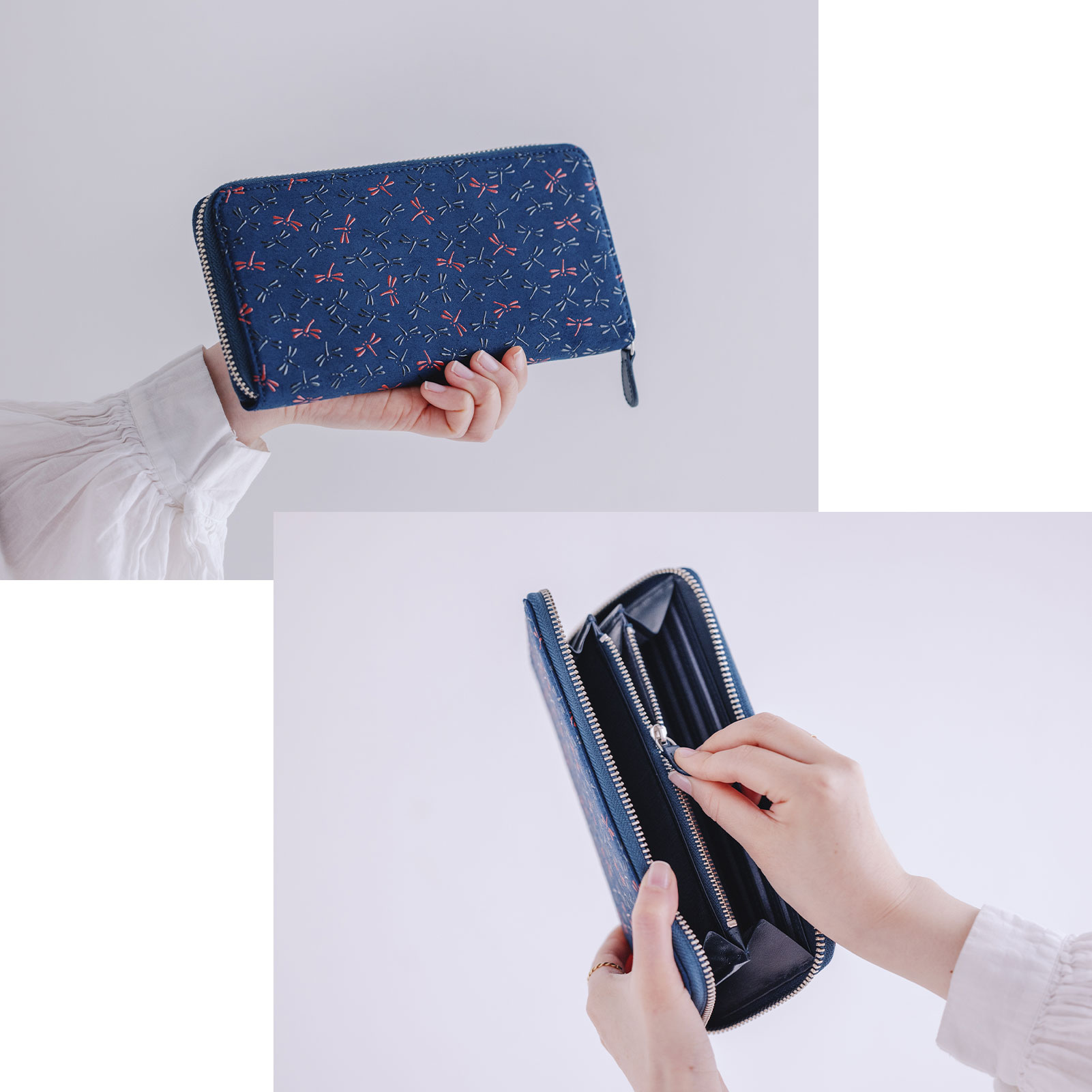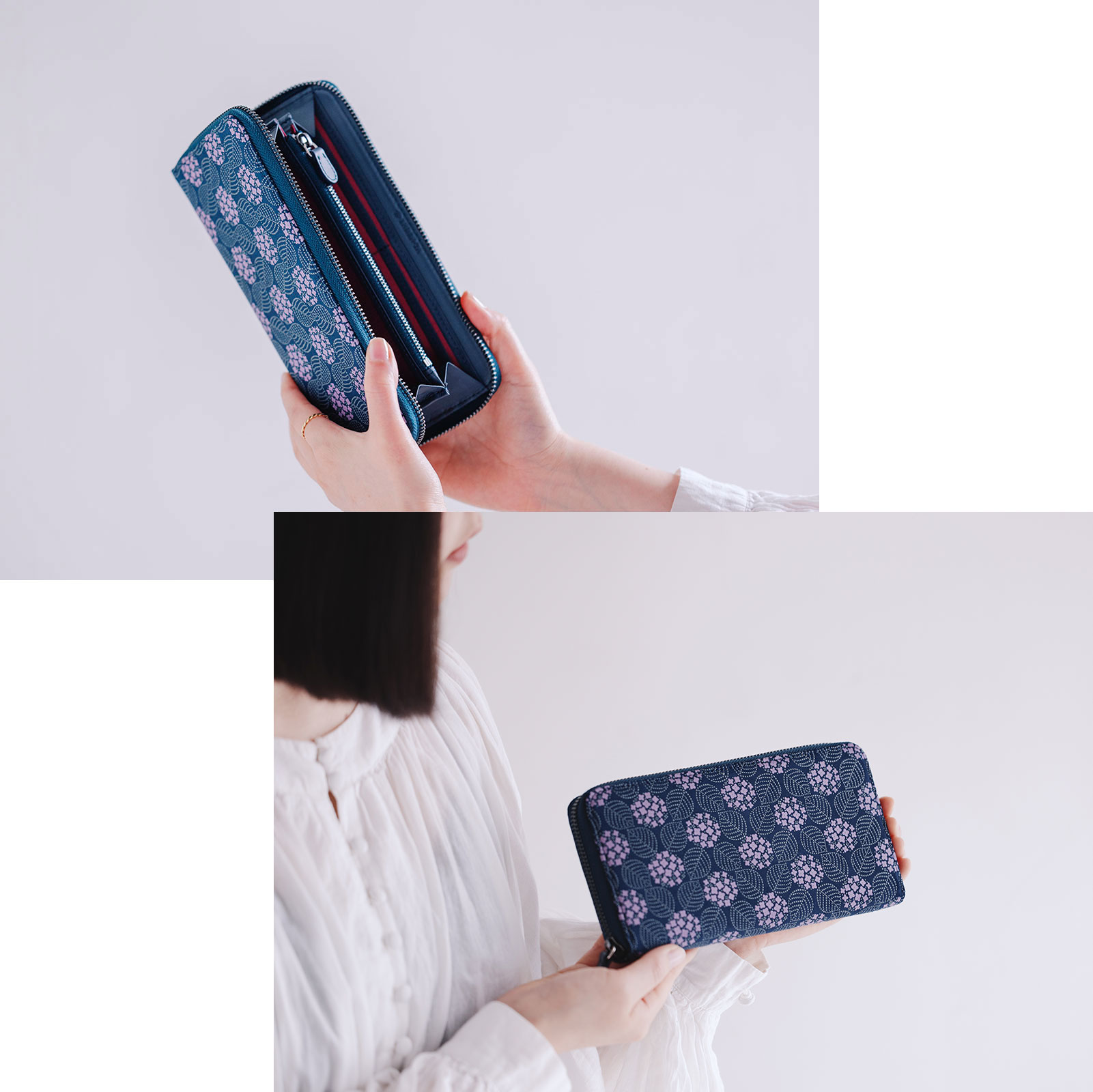 人気の創作シリーズにラウンド束入(長財布)が新しく仲間入りしました。今回は、瓢箪模様の「庵-いほり-」、赤と黒の漆の「なごみ」、紫陽花模様の「みその」の3種類。機能性はもちろんシャープなデザインのラウンド束入。大人びたシックな色合と“粋”なスタイルで、これから様々な装いに寄り添い、日常に華を添えてゆきます。