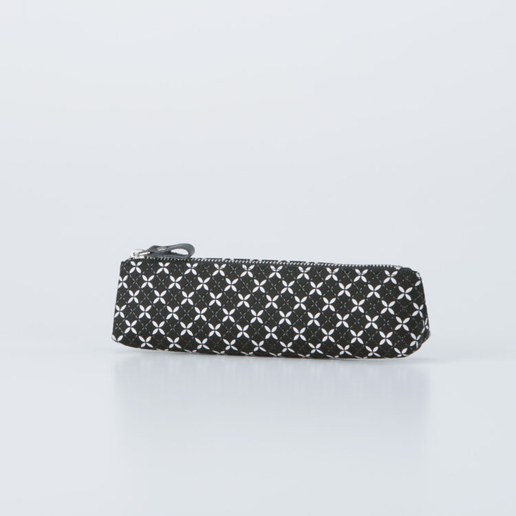 それでも重すぎない印象なのは、白の更紗と細かい黒の漆で描いた七宝繋ぎの模様。